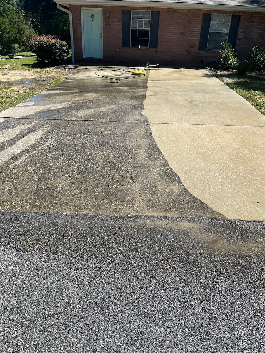 We were called out to refresh this duplex's driveway - take a look at the difference of the before and after in progress! If you need a driveway cleaning in Pensacola, call us today.