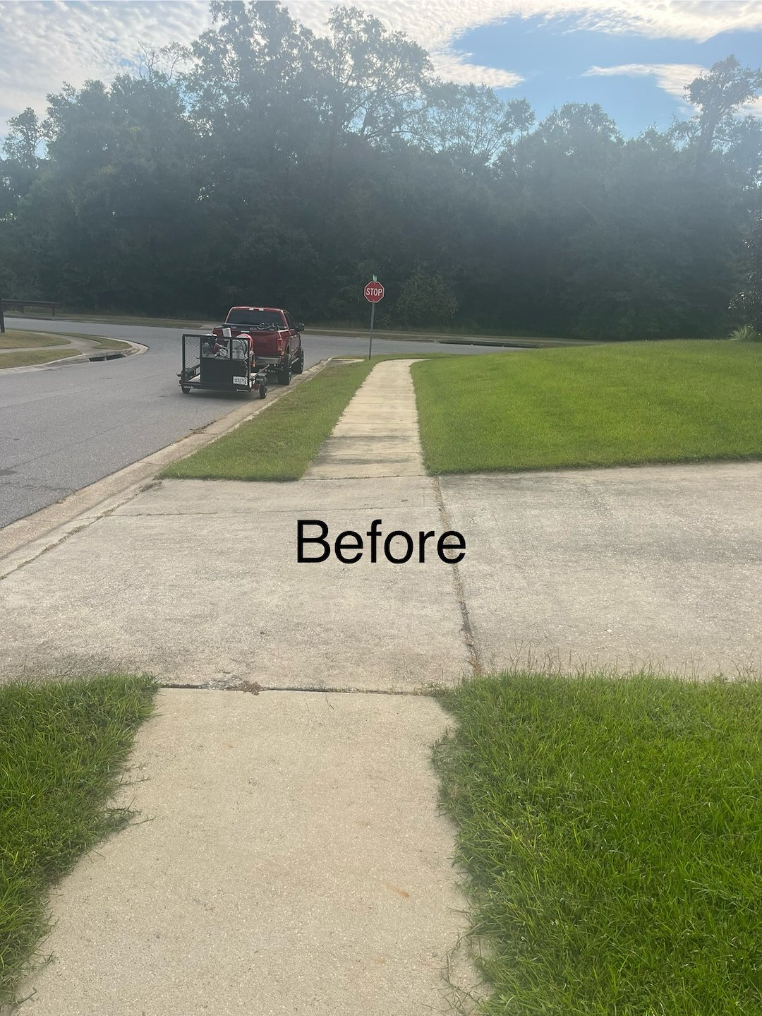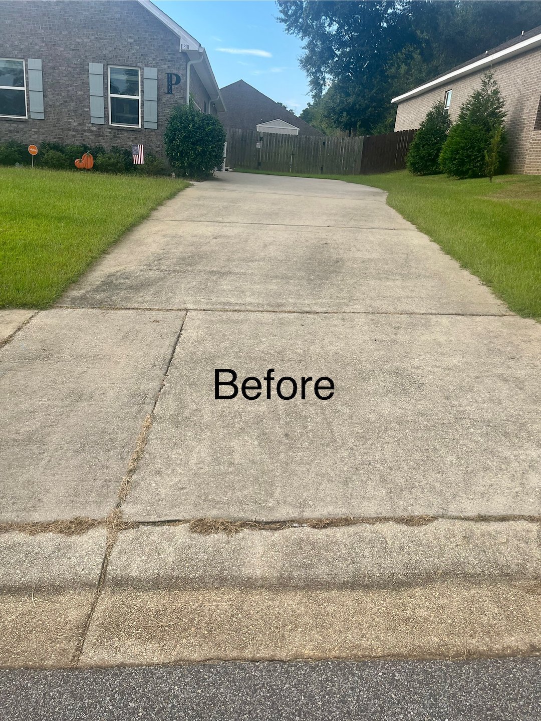 This corner lot in Daphne Al had dirty drains, sidewalks, and a driveway that had seen better days. We were doing the neighbors house when this homeowner admired our work which led to starting his job the following day. We stepped in and gave it the deep clean it needed. Added a post treatment restoring this beautiful home’s curb appeal in a big way.